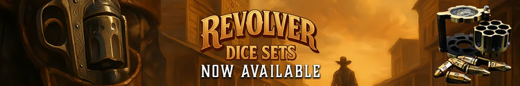 Channel legendary power with the Hexchamber Revolver Dice Set in Ancient Gold. Solid metal bullet dice gleam with timeless elegance, housed in a spinning chamber crowned by a dragon crest. A treasure for gamers who demand artistry and adventure.