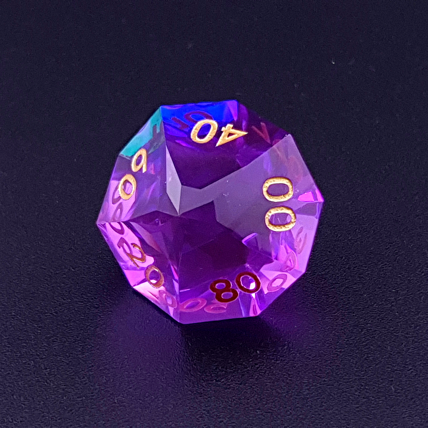 Each die is shaped with a diamond cut finish, reflecting light with striking clarity. The faceted edges catch every flicker of candlelight or LED glow, creating a mesmerising effect as you roll for glory.