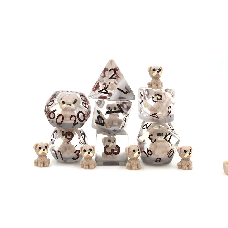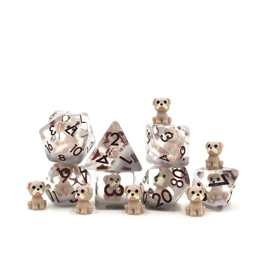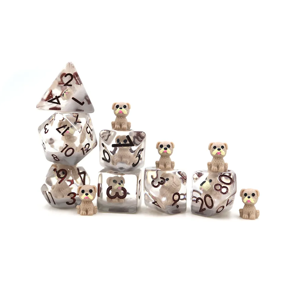 Cute Dogs | Resin Inclusion Dice | 7 Piece Set