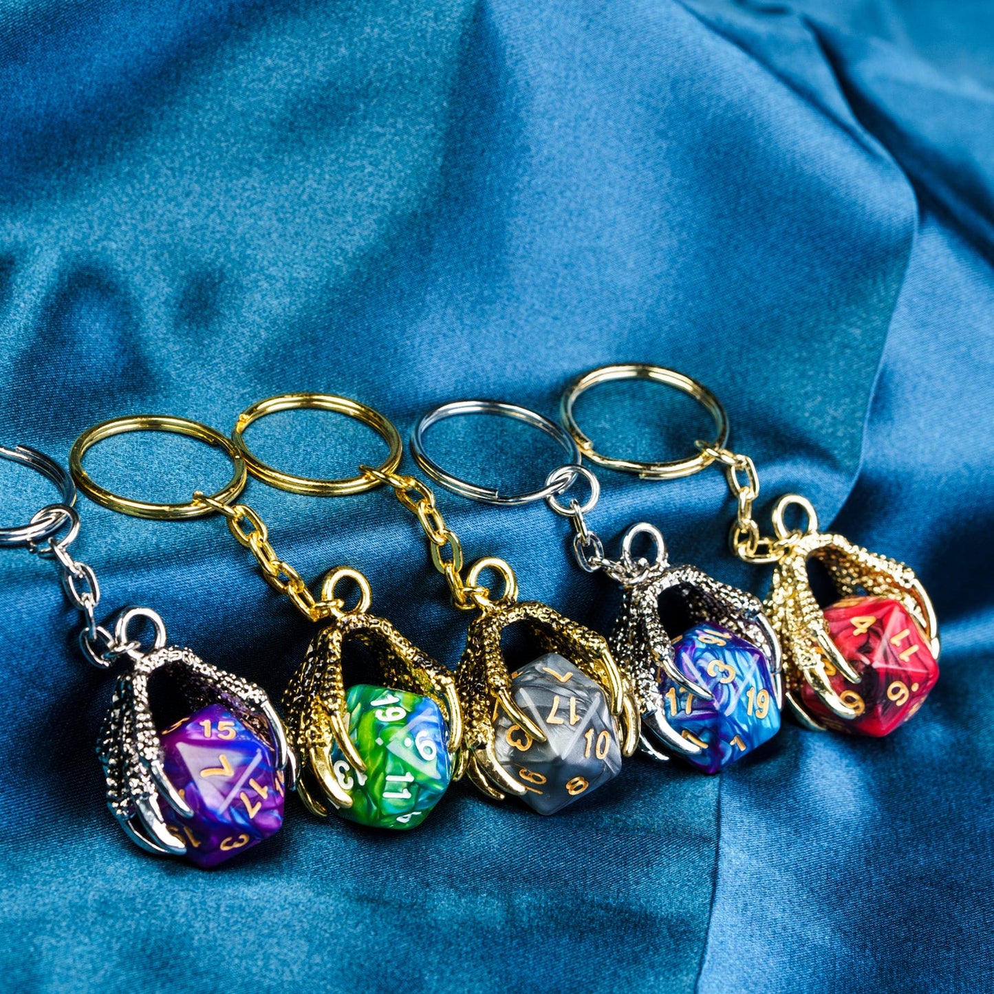 • Variety of Dice: Choose from traditional D20s, D12s, or other polyhedral dice commonly used in DnD games, making each keyring a miniature representation of the gaming experience.