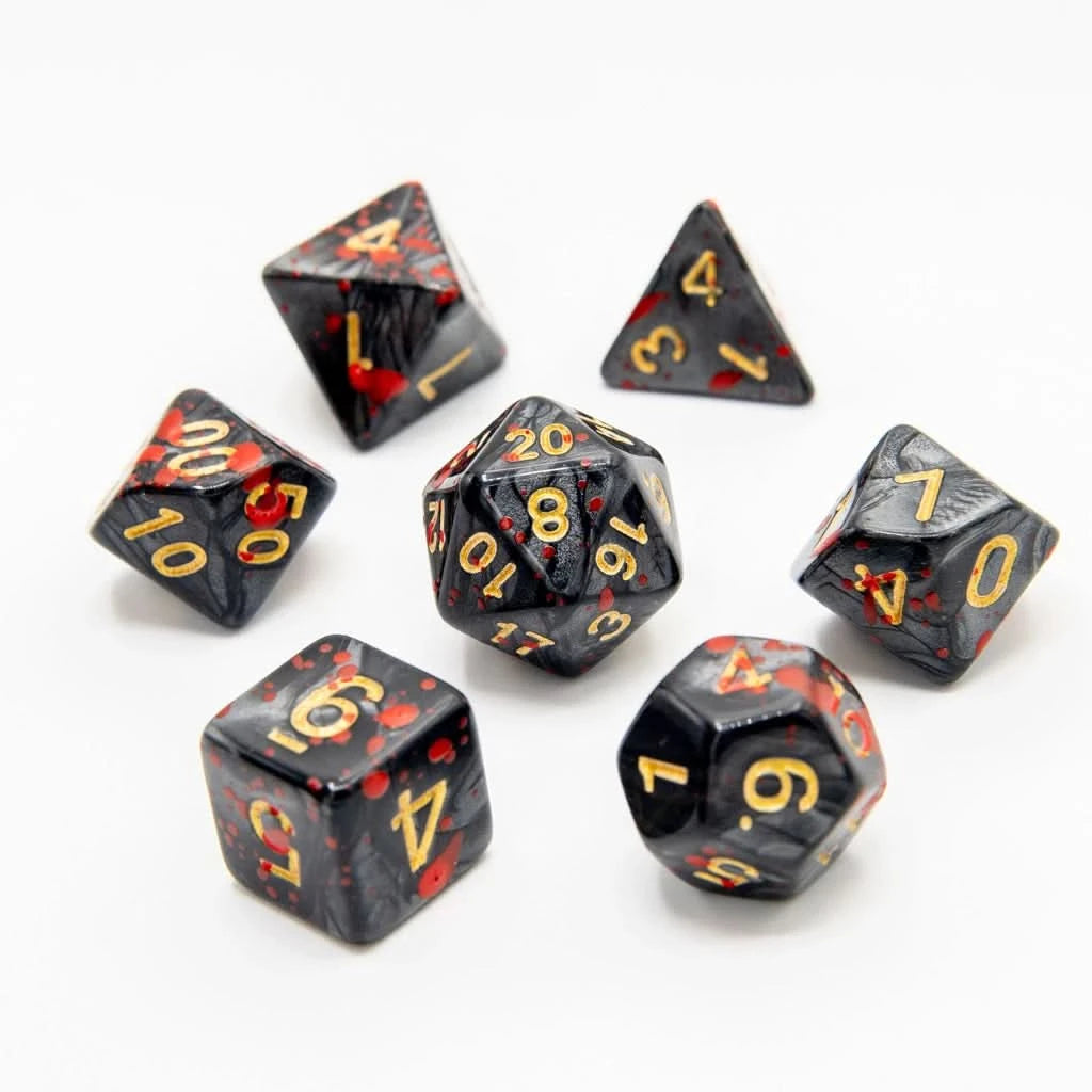 Unlock a world of adventure with our full sets of 7 acrylic polyhedral dice, perfect for your Dungeons and Dragons sessions. Each set includes D20, D12, D10, D%, D8, D6, and D4 dice, available in a variety of styles and colours to suit every player’s preference. Presented in a unique test-tube style display tube, these dice sets are as captivating as they are functional.