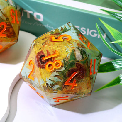 Art Core, Oversized 50mm D20 Chonk: Handcrafted DnD Dice with Decorative Cores